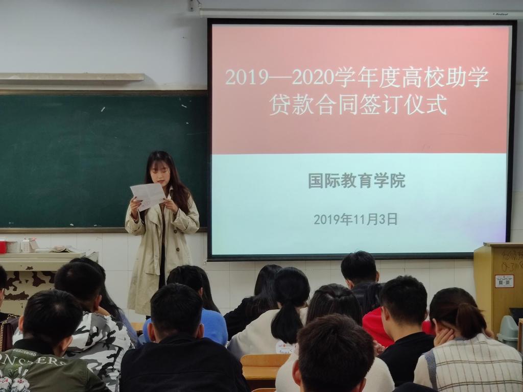 2019年11月3日,亚洲欧美精品在A214教室举行2019-2020学年高校助学贷款合同书签订仪式暨诚信金融知识讲座。仪式由学院资助专干李锋丽老师主持,申请该学年高校助学贷款的全体学生参加。