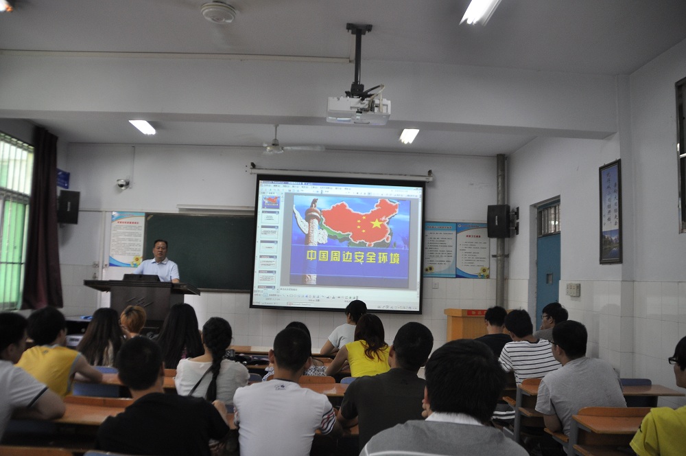 马院长从中国周边环境、我国与周边国家关系和中国和平崛起应对策略三个方面剖析了当前中国周边安全环境。他从中国地理位置所形成的朝鲜半岛、东海、南海、南亚、西亚五个方位对中国周边国家安全总体形势进行了评估和分析,指出目前因领土、领海和能源利益等周边相互的摩擦日益增加。另外周边国家也动荡不断,如半岛局势,南海争端,印巴冲突;印度与我国的领土纠纷,阿富汗,巴基斯坦局势,伊拉克伊朗问题都对我国形成了非常复杂的影响。马佩英院长分析了影响中国周边局势的主要因素,即大国在周边争夺战略利益;大国插手加剧南海问题复杂化;西方对中国的颜色革命;非传统安全威胁上升等因素。最后他对中国周边安全形式进行了展望,预计中国安全形势会体现在中美战略竞争加剧,周边国家对我国安全形成严重扰局,地区外大国如不能借力,难以对我国形成实质性的遏制封锁,并勉励大家要居安思危,胸怀忧患意识。马院长一个半小时精彩的讲座博得了参加讲座同学们的阵阵掌声。
