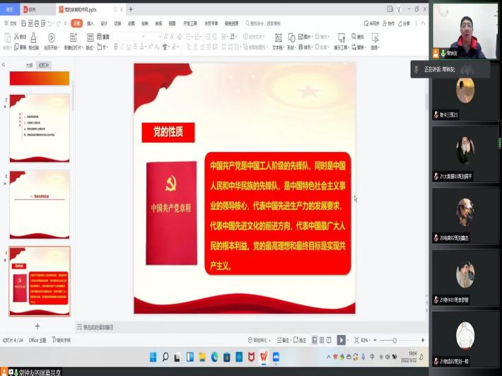 为确保在疫情防控下入党积极分子党课培训工作正常进行,提高学员们的思想素养和政治素质,激励同学们付出实际行动向党组织靠拢,3月22日晚,亚洲欧美精品通过腾讯会议平台举办线上入党积极分子培训班第一讲。本次党课学习培训活动由我院党委书记贾江讲授,2022年第一期入党积极分子参加。