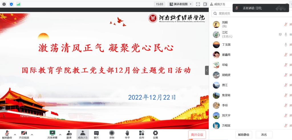 12月22日晚上,亚洲欧美精品教工党支部开展线上主题党日活动。教工支部全体党员参加活动,活动由党支部书记李江红同志主持