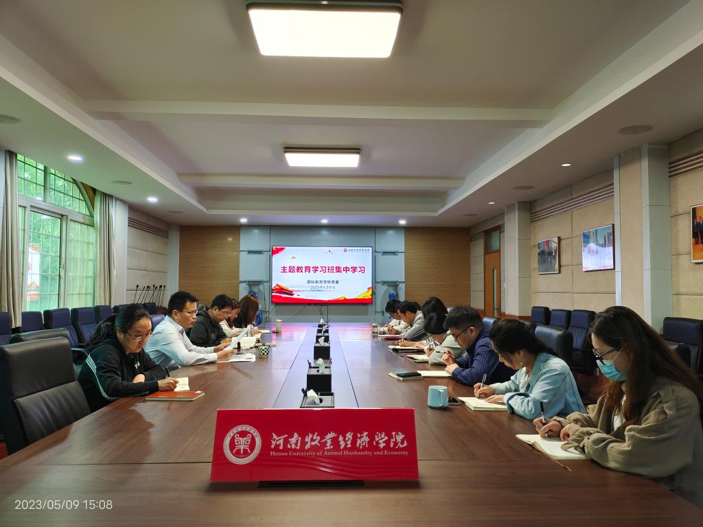 院长胡晓波以“围绕中心、服务大局”为主题,领学了习近平总书记在中央党校建校90周年庆祝大会暨2023年春季学期开学典礼上的讲话、党的二十大报告第四部分“加快构建新发展格局,着力推动高质量发展”的重要论述、习近平总书记给中国农业大学科技小院的同学们的回信精神等内容。他指出,要坚持全面系统、及时跟进,认真研读党的二十大报告和习近平总书记的系列重要讲话精神,进一步提高政治站位,准确理解把握围绕中心、服务大局的基本导向,找准各项工作的结合点、切入点、着力点,聚焦新时代新征程教育对外开放高质量发展忠诚履责,服务全校工作大局;要引导广大青年学生志存高远、脚踏实地、学好知识、打好基础,勇于在全面推进乡村振兴的新实践新征程中贡献青春力量。