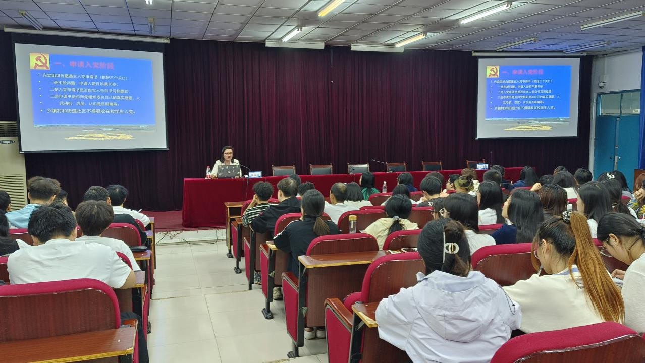 李江红从“申请入党”、“确定培养入党积极分子”、“确定考察发展对象”、“接收预备党员”、“预备党员转正”五个阶段详细介绍了大学生入党的基本流程和注意事项,让同学们对大学生入党条件及流程有了更深层次的了解。她指出,作为一名入党积极分子,一定要清楚了解和掌握入党条件和发展党员标准,要自觉对照党章要求,端正入党动机,做到从根本上了解党,从感情上热爱党,从行动上追随党;要认真学习党的理论知识,加深对党的创新理论的理解和把握;要按照党组织的要求,自觉定期向党组织汇报个人思想状况,听取党组织的意见和要求;要时时处处以一名共产党员的标准来要求自己,在工作、生活、学习的方方面面起到先锋模范作用,用实际行动积极向党组织靠拢。