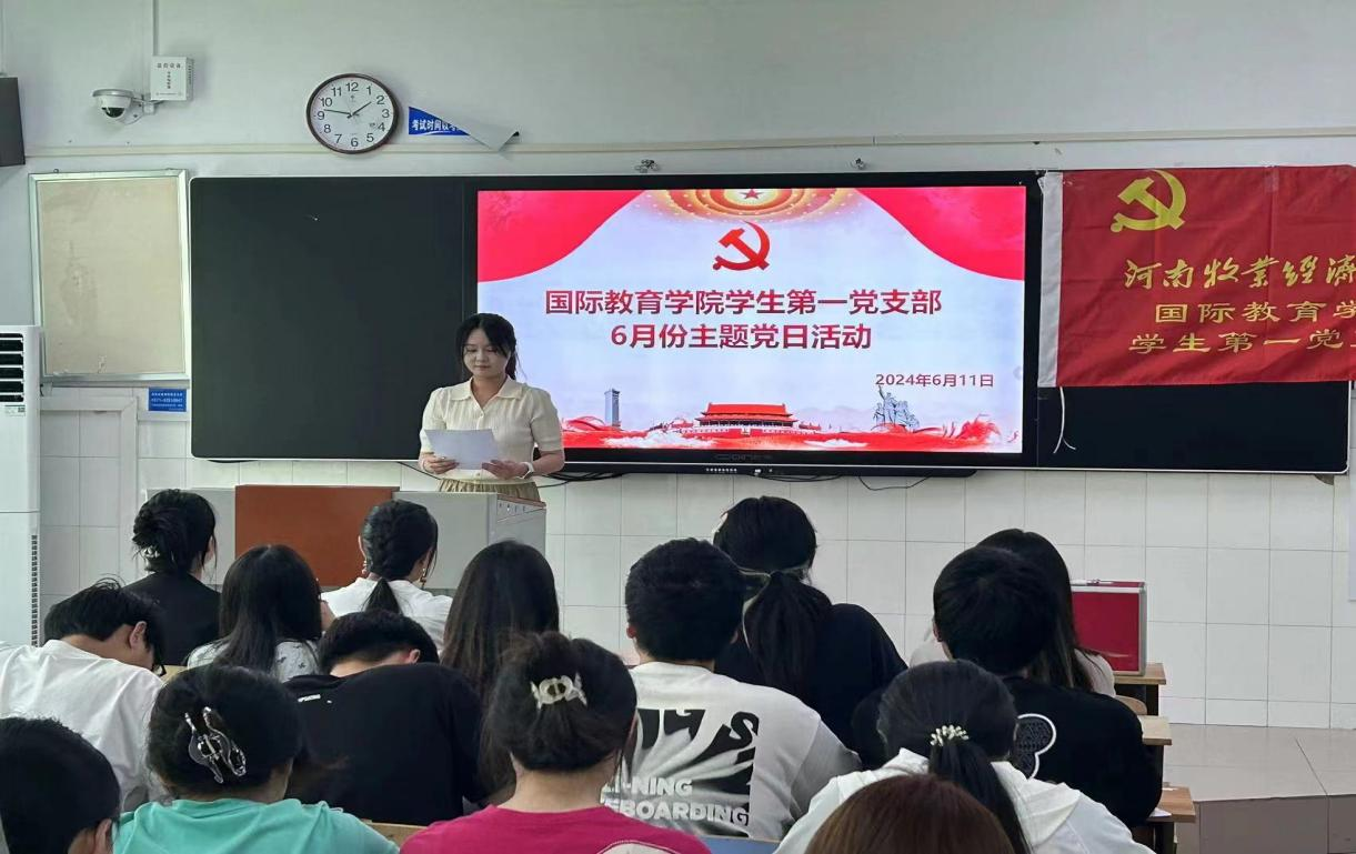 6月11日下午1点,亚洲欧美精品学生第一党支部在B107教室召开6月份主题党日活动,此次会议由支部书记侯丁琳主待,一支部全体学生党员参加。
