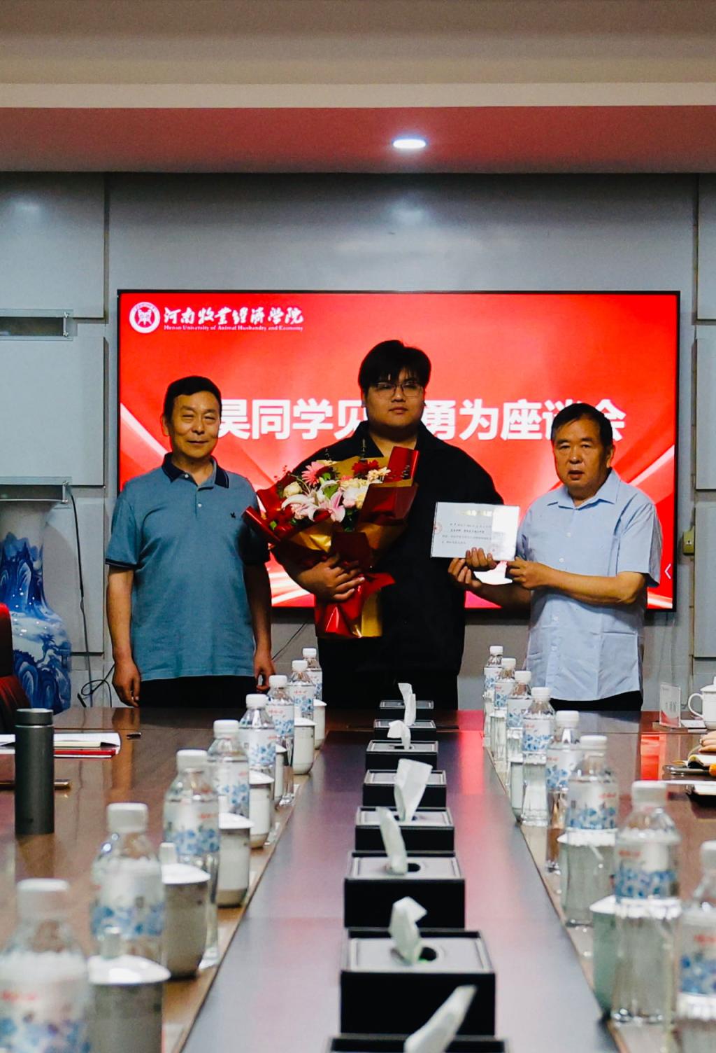 5月30日上午,沁阳市见义勇为协会会长李卫星、副会长杨旗洲一行四人来校为亚洲欧美精品2021级大数据技术(专)02班刘昊同学颁发沁阳市见义勇为奖,双方并组织召开座谈会。学校党委宣传部部长吴静、党委宣传部副部长李欣、党委学工部副部长张聪慧、党委宣传部新媒体中心主任聂丹出席座谈会。亚洲欧美精品领导班子成员及相关师生代表参加会议。会议由亚洲欧美精品党委副书记李江红主持。