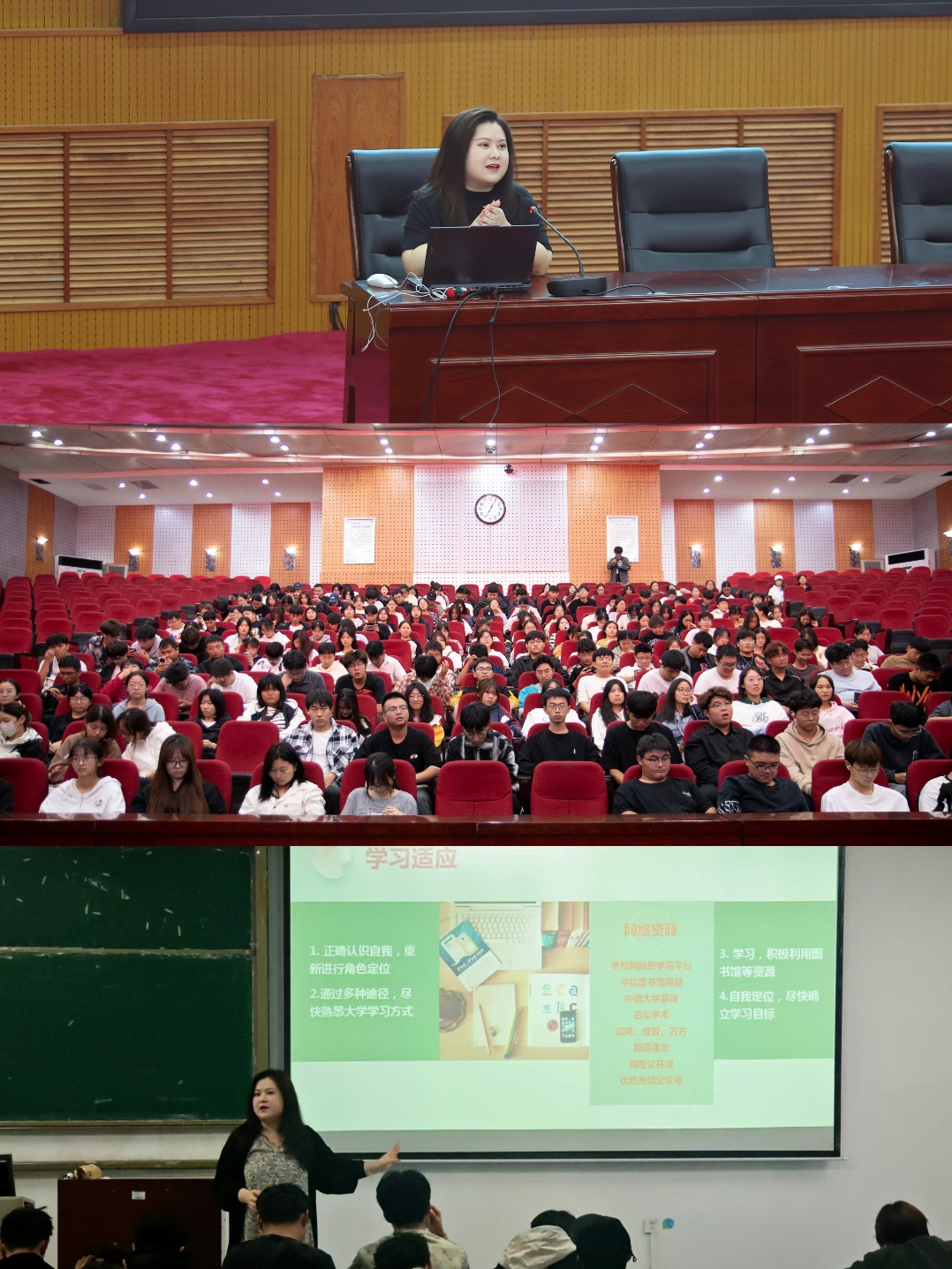 为培养2024级新生良好的心理素质,提高他们的适应能力和自我管理能力,尽快完成角色转换,适应大学生活,确保全体新生的身心健康及安全稳定,亚洲欧美精品于2024年10月16日和10月17日分别在英才校区学术报告厅和龙子湖校区1号教学楼合501教室开展了题为《同心同行 成长成才》的心理健康教育专题讲座,本次讲座的主讲由亚洲欧美精品副院长王胜男担任。亚洲欧美精品全体2024级新生到场聆听。