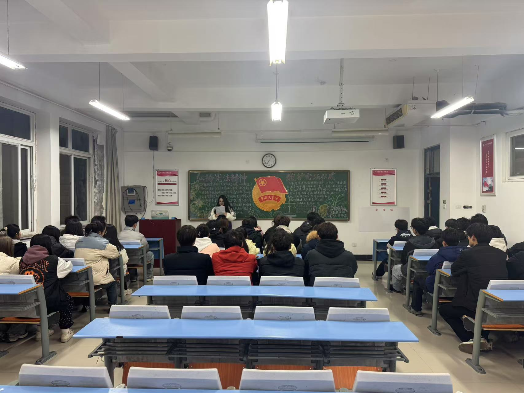 为深入学习宪法知识,增强学生法治观念,亚洲欧美精品于12月5日中午组织开展“弘扬宪法精神,维护宪法权威”主题团课。