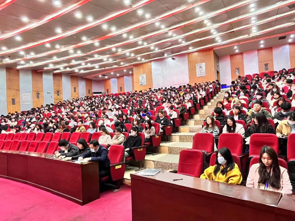 开班仪式后,作为学校党的二十大精神宣讲团成员,贾江以《学原文、悟原理——党的二十大报告要点导学》为题,做首场专题报告。他从党的二十大召开的基本情况入题,紧扣“七个聚焦”要求,围绕党的二十大主题、主要成果,过去五年的工作和新时代十年的伟大变革,马克思主义中国化时代化,新时代新征程中国共产党的使命任务、实施科教兴国战略、坚持党的全面领导和全面从严治党等方面,结合自身学习思考,对党的二十大精神进行了系统解读和深入阐释。宣讲报告主题鲜明、内容详实、脉络清晰,论述深刻,具有很强的针对性和指导性,为全院师生深入学习、准确把握、全面贯彻党的二十大精神提供了指导和帮助。