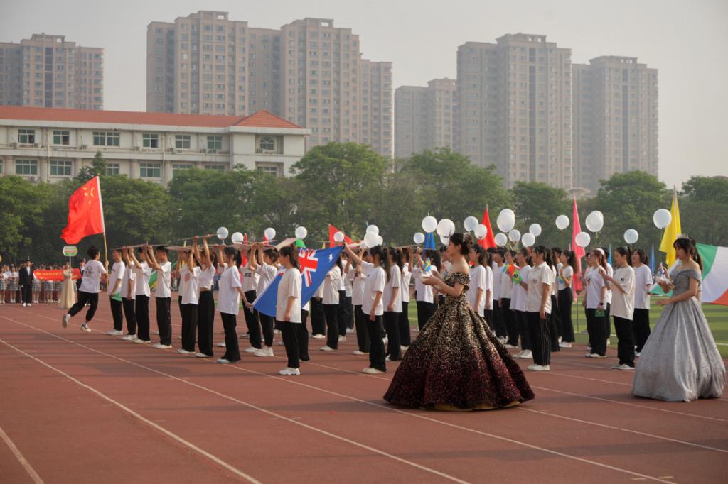 4月20日上午,河南牧业经济学院英才校区的田径场上彩旗飘扬,各队伍方阵整装待发,观众席气氛高涨、欢呼不断。东日旭阳撒向绿茵草坪,身着军装的国旗护卫队、校旗队,充满激情的彩旗队,以及各学院、书院别具风格特色的代表方阵依次入场。只见亚洲欧美精品代表方阵面带骄人的微笑,迎着清晨的光辉在主席台下站定,同学们用力挥舞五星红旗,高扬各国国旗,将亚洲欧美精品中外融通,交流合作的办学理念充分展现出来。红旗飘扬,五彩斑斓的气球缓缓上升,白色和平鸽盘旋在绿茵场上方,引来观众席一阵热烈欢呼。随着最后一支方阵归入队伍,学校领导发表本次运动会的激昂致辞,田径比赛正式开始!