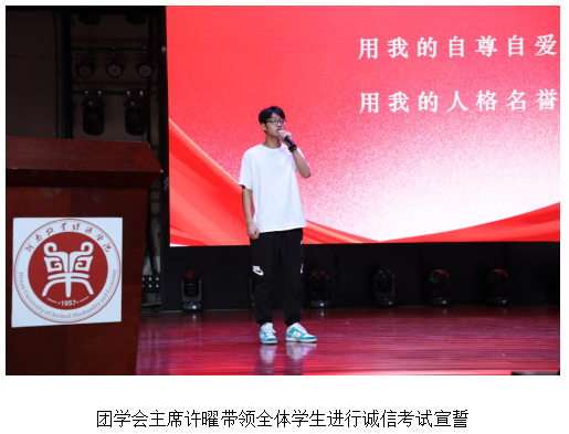 大会在乐器表演《最初的梦想》青春激昂的旋律中拉开了帷幕。学院领导班子成员为受表彰的文明班级、学科竞赛获奖者、先进班集体、优秀运动员、“百名学业之星”、“十大优秀学生标兵之星”等校级专项奖获得者、国家励志奖学金及国家奖学金获奖代表进行颁奖。这些先进集体和优秀学生是我院青年学生的榜样,他们不忘初心、励志笃行,激励着同学们在奋斗的道路上砥砺奋进、再创辉煌。铿锵有力的朗诵《青春 奋斗 梦想》,朝气蓬勃的舞蹈《生命之舞》,细腻而深情的歌曲《如愿》,充满希望和憧憬的合唱《夜空中最亮的星》,澎湃着青春的激情,昂扬着奋进和向往。先进班集体代表,来自21国教物流(卡罗理工)02的罗明阳,学科竞赛获奖代表,来自20国教物流(卡罗理工)02班的秦一铮,国家奖学金获奖代表,来自20国教会计(ACCA)01班的毛佳雯以及2023届优秀考研毕业生代表,来自19国教会计(ACCA)02班的陈新宇等四位优秀学生先后分享了自己在大学期间的思想认知、专业学习、工作生活、创新创业、社会实践、志愿服务等方面的经历及心得感悟,鼓励全院学生要坚守理想,要敢于有梦、勇于追梦、勤于圆梦。他们用生动感人的励志事迹,抒写了新时代青年学子的情怀和担当,彰显了国教院青春活力,在砥砺奋进的过程中不懈追求,也为全院学生树立了标杆和榜样。最后,团学会主席许曜作为领誓人,带领全体学生进行诚信考试宣誓,此环节让学生深受教育,学生们纷纷表示一定以诚实的态度、积极的行动参加考试,用真实的成绩为一学期的努力画上圆满的句号。