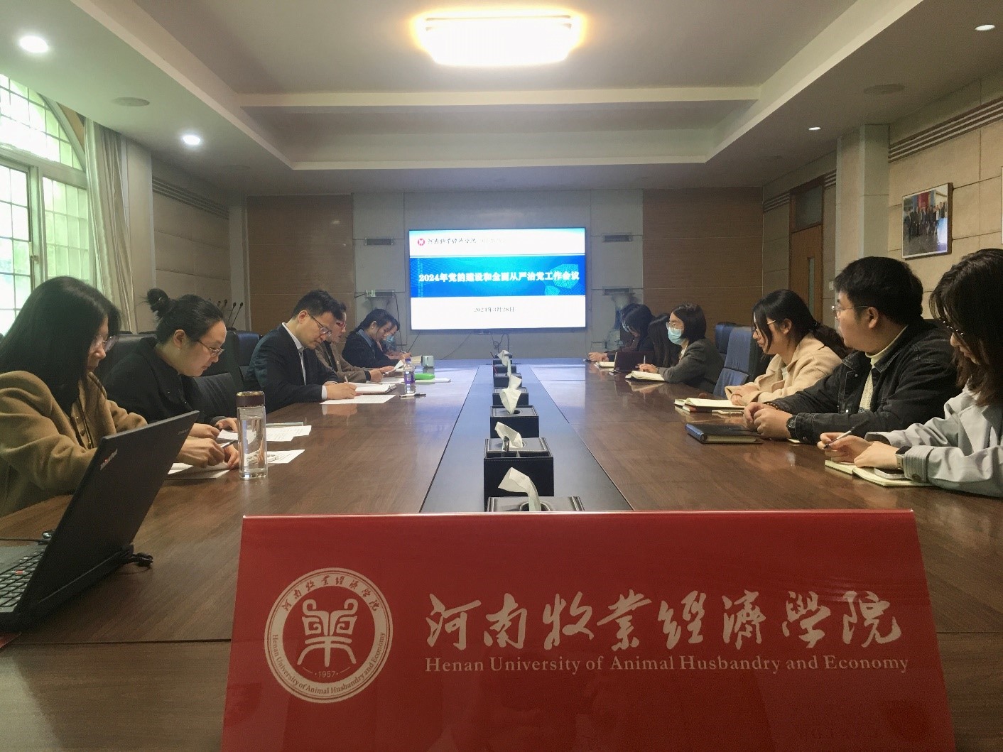 3月28日下午,亚洲欧美精品在英才校区教学办公楼113会议室召开2024年党的建设和全面从严治党工作会议。学院全体教职工参加会议。会议由院党委副书记李江红主持。