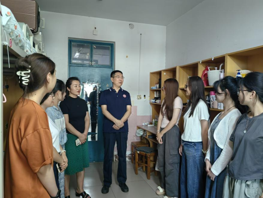 9月8日下午,为了帮助新生尽快适应大学生活环境,我院党委书记贾江、党委副书记李江红、团委副书记(学工办副主任)侯丁琳及新生辅导员深入我院男生、女生宿舍,走访看望2024级新生。走访过程中,学院领导老师走进每一间宿舍,与同学们深入交流,亲切询问了他们的住宿条件和生活状况,认真倾听他们离开家乡、踏入校园后的真实感受与心路历程。并叮嘱同学们要关注个人卫生,保持规律的作息时间,适量进行体育锻炼,培养积极乐观的心态。同时,学院领导还对同学们提出殷切期望,希望同学们珍惜宝贵的大学时光,合理规划自己的学业,主动参与校园的文化和体育活动,全面提升个人素质。