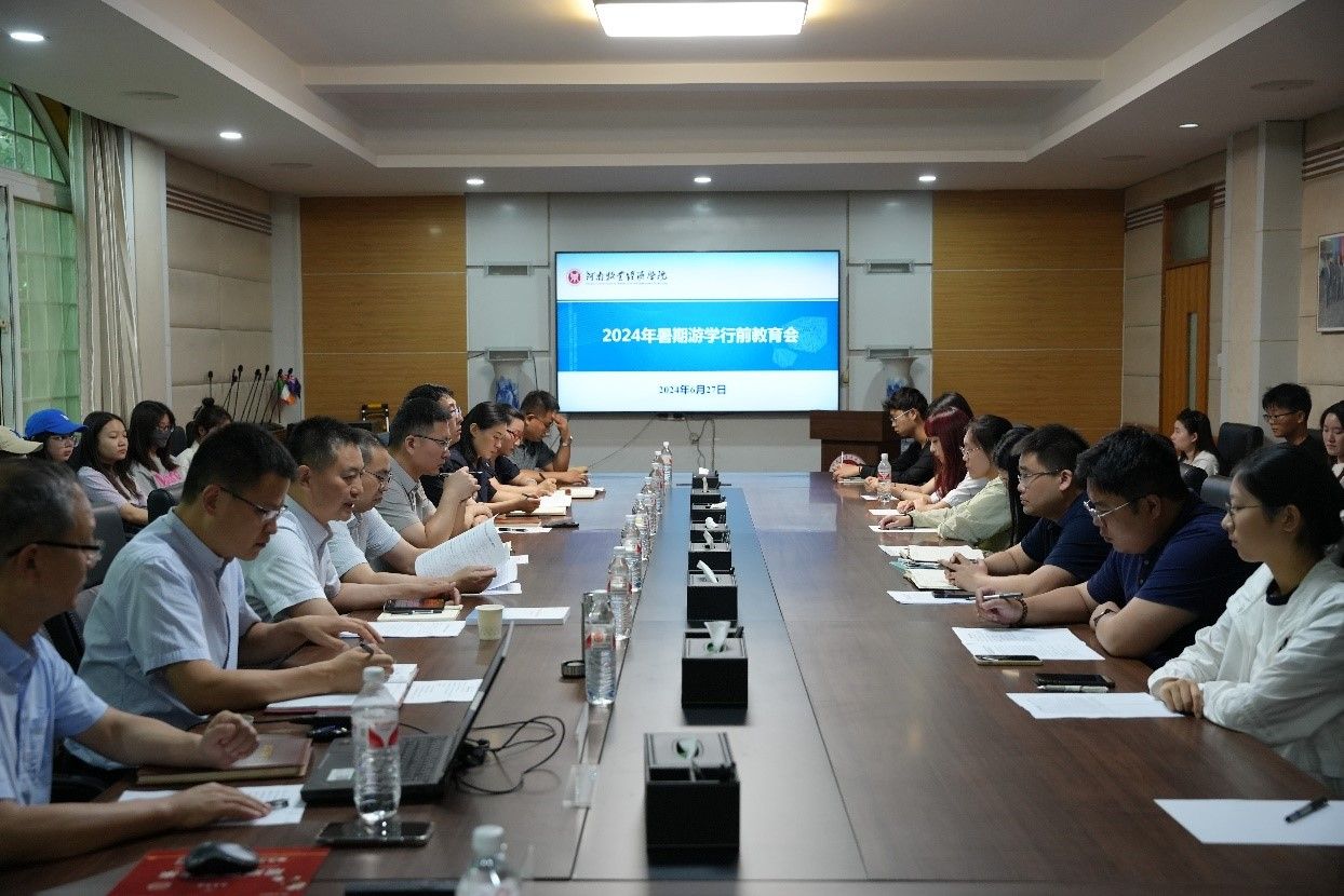 6月27日,学校2024年暑期学生国外游学行前教育会在英才校区教学办公楼113会议室举行,副校长黄良杰出席会议并讲话。党委学工部、国际交流与合作处、亚洲欧美精品、卡洛理工国际学院等单位相关负责同志,爱尔兰东南理工大学代表,2024年暑期游学项目带队教师及全体游学学生参加会议。会议由国际交流与合作处处长赵建华主持。
