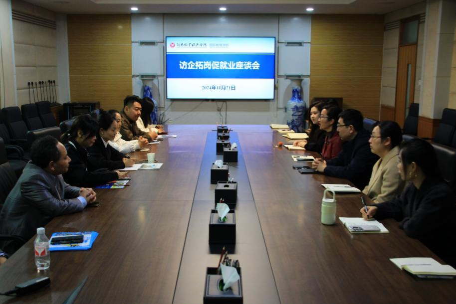 下午15:00,学院在教学办公楼113会议室召开了访企拓岗促就业座谈会。贾江书记首先对参加学院双选会的各用人单位表示热烈欢迎,并详细介绍了学院总体就业形势和毕业生就业趋势,诚挚邀请与会企业代表,深化院企合作、资源共享、优势互补、形成合力、共同发展。用人单位从企业规模、业务范围、人才需求、院企合作等方面依次进行了详细的介绍。会议尾声,贾江书记对各单位代表的参与表示衷心感谢,并期望通过本次座谈会,进一步深化院企合作,携手共创毕业生就业工作的新篇章。