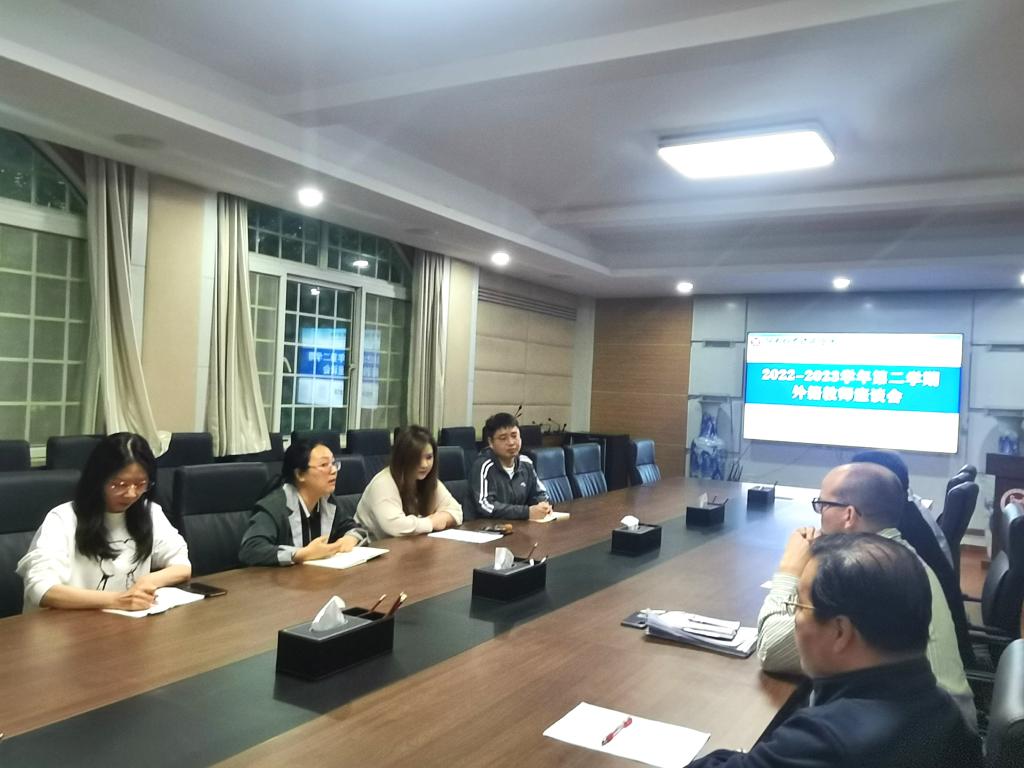为切实加强教育教学管理,落实教学管理内容,规范外籍教师日常行为,4月27日晚,亚洲欧美精品组织召开了2022-2023学年第二学期外籍教师座谈会。参加会议的人员有副院长邓瑜、副院长王胜男,教学科研办公室主任苏晓辉、副主任刘天宇及外籍教师Thomas、Adam、Jafy、Dan四位外籍教师。会议由刘天宇主持。